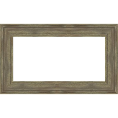 FRAME DETAILS: The 3 inch wide Shipwreck Greywash frame is a wide, dark brown frame with a distressed grey-washed finish and weathered pockmark details.