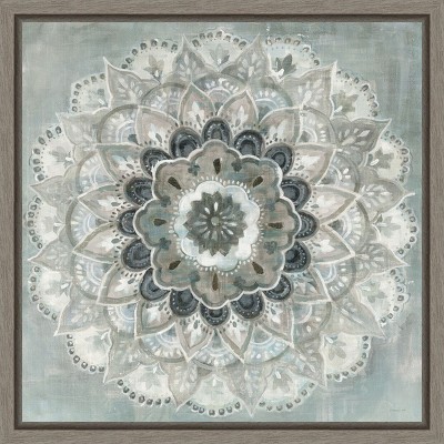 Like strips of silver and navy blue, a clouded seascape conceals a bright white sun in the distance. An oval of light breaks through the ashen clouds above the ocean, reflecting in sparkles on the oceans surface. This canvas art print was created by Michelle Matthews and printed in Madison, WI. It is stretched across a solid surface to resist sagging. We use only premium, high-tension canvas. Our exclusive stretching techniques hide corner folds and provide a taut canvas surface. The artwork is authentically licensed. The canvas appears as if it is floating in the frame because it has a narrow gap between the edge of the canvas and the frame. Our canvas items are individually made using traditional custom framing techniques, it has the quality you would expect from your local frame shop.