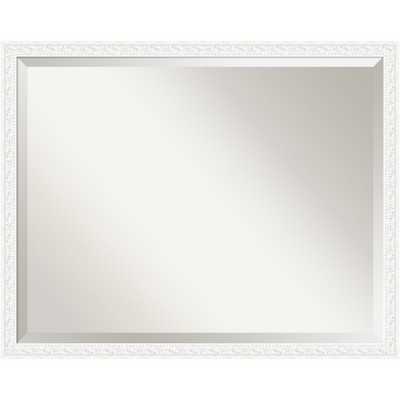 MIRROR DETAILS: This mirror features premium glass for a clear, undistorted image and is finished with a beveled edge to give the glass a decorative touch. The overall size of this bathroom mirror measures 33.5 x 27.5 inches, including the frame. Its reflective area measures 28 x 22 inches.