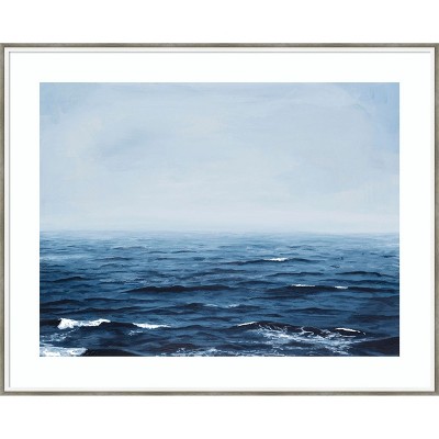 This artwork features a series of irregular silver geometric shapes stacked vertically on a soft blue background. The shapes are outlined with bold black, creating a striking contrast against the blue. The minimalist composition and textured surfaces add depth and intrigue to the piece. This framed art print was created by Michael Willett and printed by Amanti Art in Madison WI. The print is giclee printed using fade-resistant inks for picture-perfect detail and incredible depth of color and finished with a 100% real wood frame. Individually made using traditional custom framing techniques, it has the quality you would expect from your local frame shop.