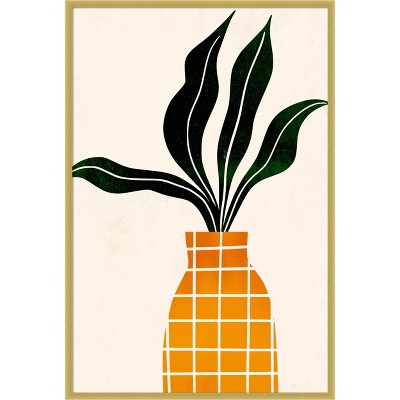 The artwork features a collection of stylized cacti and desert plants set against a simple, geometric backdrop. Bold shapes and vibrant colors such as teal, yellow, and pink form a dynamic and modern composition. The use of angular lines and color blocking creates a striking abstract representation of the desert landscape. This framed art print was created by David Galan and printed by Amanti Art in Madison WI. The print is giclee printed using fade-resistant inks for picture-perfect detail and incredible depth of color and finished with a 100% real wood frame. Individually made using traditional custom framing techniques, it has the quality you would expect from your local frame shop.