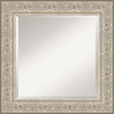 Give your bathroom the finishing touch with this Beveled bathroom mirror. The Sydney Silver frame is a three pattern ornate silver frame with floral middle and outer patterns and a beaded inner lip. There are dusty pewter accents in the grooves and recesses of the patterns. The frame is 3.5 in. wide and stands 1.75 in. off the wall. It's Individually made using traditional custom framing techniques, it has the quality you expect from your local frame shop. It holds its value with premium finishing that can be appreciated up close. Because of our attention to detail and focus on artistry, architects, interior designers, and homeowners alike choose this mirror to create beautiful living spaces.
