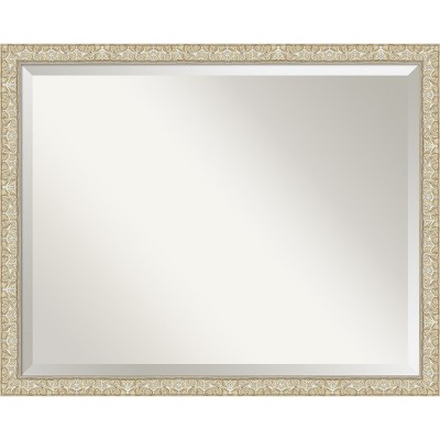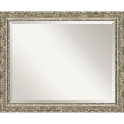 Give your bathroom the finishing touch with this Beveled bathroom mirror. The Sydney Silver frame is a three pattern ornate silver frame with floral middle and outer patterns and a beaded inner lip. There are dusty pewter accents in the grooves and recesses of the patterns. The frame is 3.5 in. wide and stands 1.75 in. off the wall. It's Individually made using traditional custom framing techniques, it has the quality you expect from your local frame shop. It holds its value with premium finishing that can be appreciated up close. Because of our attention to detail and focus on artistry, architects, interior designers, and homeowners alike choose this mirror to create beautiful living spaces.