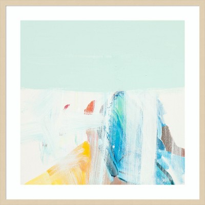 The artwork depicts tall, slender blades of grass painted in various shades of green, set against a textured background of soft earth tones and hints of blue. The composition is abstract, focusing on the vertical movement and rhythm of the grass. The overall effect is calming and evokes a sense of natural beauty and tranquility. This framed art print was created by Ethan Harper and printed by Amanti Art in Madison WI. The print is giclee printed using fade-resistant inks for picture-perfect detail and incredible depth of color and finished with a 100% real wood frame. Individually made using traditional custom framing techniques, it has the quality you would expect from your local frame shop.