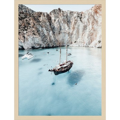 The artwork features a modern building with a striking turquoise door set against a clear blue sky. Tall palm trees rise elegantly in the background, adding a tropical flair. The structure's clean lines and minimalistic design create a serene and stylish visual. This framed art print was created by Tom Windeknecht and printed by Amanti Art in Madison WI. The print is giclee printed using fade-resistant inks for picture-perfect detail and incredible depth of color and finished with a 100% real wood frame. Individually made using traditional custom framing techniques, it has the quality you would expect from your local frame shop.