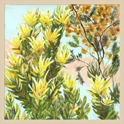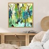 The artwork features an abstract depiction of a lush forest with a vibrant palette of greens and blues. Tall, slender trees reach upwards, intertwined with swirling patterns that evoke a sense of movement and life. This piece captures the tranquility and beauty of nature with expressive brushstrokes and dynamic color contrasts. This canvas art print was created by Elan Studios and printed in Waunakee, WI. It is stretched across a solid surface to resist sagging. We use only premium, high-tension canvas. Our exclusive stretching techniques hide corner folds and provide a taut canvas surface. The artwork is authentically licensed. The canvas appears as if it is floating in the frame because it has a narrow gap between the edge of the canvas and the frame. Our canvas items are individually made using traditional custom framing techniques, it has the quality you would expect from your local frame shop.