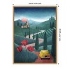 This artwork depicts a charming Tuscan landscape with rolling hills and winding roads. A vintage yellow car drives along the road surrounded by rows of cypress trees, leading towards a rustic farmhouse. Bright red poppies in the foreground add a touch of vibrancy under a setting sun. This canvas art print was created by Emel Tunaboylu and printed in Waunakee, WI. It is stretched across a solid surface to resist sagging. We use only premium, high-tension canvas. Our exclusive stretching techniques hide corner folds and provide a taut canvas surface. The artwork is authentically licensed. The canvas appears as if it is floating in the frame because it has a narrow gap between the edge of the canvas and the frame. Our canvas items are individually made using traditional custom framing techniques, it has the quality you would expect from your local frame shop.