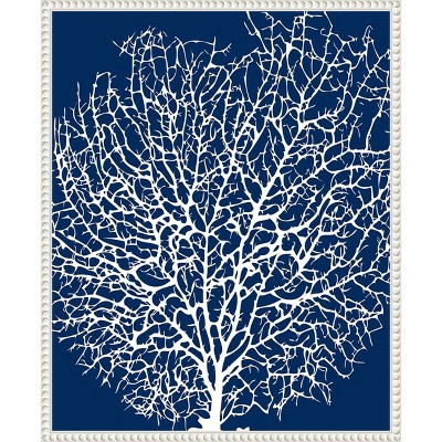 In this minimalist digital illustration, two abstract floral shapes command attention against a navy background. The artwork\'s personality is imbued with a botanical theme featuring leaves and plants. This canvas art print was created by Alisa Galitsyna and printed in Madison, WI. It is stretched across a solid surface to resist sagging. We use only premium, high-tension canvas. Our exclusive stretching techniques hide corner folds and provide a taut canvas surface. The artwork is authentically licensed. The canvas appears as if it is floating in the frame because it has a narrow gap between the edge of the canvas and the frame. Our canvas items are individually made using traditional custom framing techniques, it has the quality you would expect from your local frame shop.