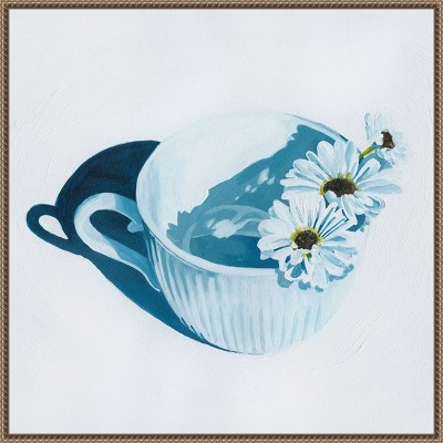 The artwork depicts a serene landscape with large, fluffy clouds dominating the sky. Below, the horizon features a vast open area with earthy tones, suggesting a tranquil setting. The vibrant blue sky enhances the sense of calm and openness. This canvas art print was created by Grace Popp and printed in Waunakee, WI. It is stretched across a solid surface to resist sagging. We use only premium, high-tension canvas. Our exclusive stretching techniques hide corner folds and provide a taut canvas surface. The artwork is authentically licensed. The canvas appears as if it is floating in the frame because it has a narrow gap between the edge of the canvas and the frame. Our canvas items are individually made using traditional custom framing techniques, it has the quality you would expect from your local frame shop.