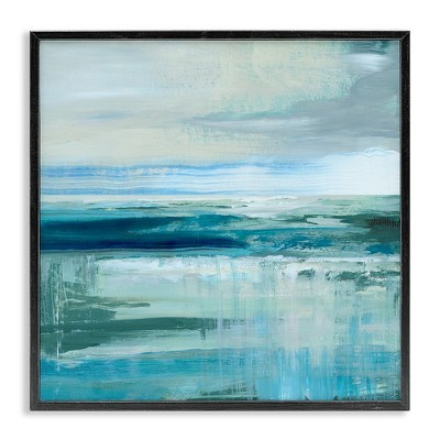 The artwork depicts a serene landscape with large, fluffy clouds dominating the sky. Below, the horizon features a vast open area with earthy tones, suggesting a tranquil setting. The vibrant blue sky enhances the sense of calm and openness. This framed art print was created by Grace Popp and printed by Amanti Art in Madison WI. The print is giclee printed using fade-resistant inks for picture-perfect detail and incredible depth of color and finished with a 100% real wood frame. Individually made using traditional custom framing techniques, it has the quality you would expect from your local frame shop.