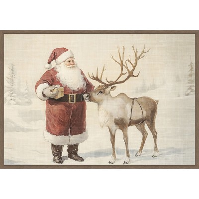 The artwork depicts a serene winter landscape where a line of reindeer with red noses gracefully walk across a snowy path. In the background, a frosted forest creates a tranquil wintery scene. The soft color palette and gentle brushstrokes evoke a sense of holiday magic and calmness. This canvas art print was created by Melloi Art Prints and printed in Waunakee, WI. It is stretched across a solid surface to resist sagging. We use only premium, high-tension canvas. Our exclusive stretching techniques hide corner folds and provide a taut canvas surface. The artwork is authentically licensed. The canvas appears as if it is floating in the frame because it has a narrow gap between the edge of the canvas and the frame. Our canvas items are individually made using traditional custom framing techniques, it has the quality you would expect from your local frame shop.
