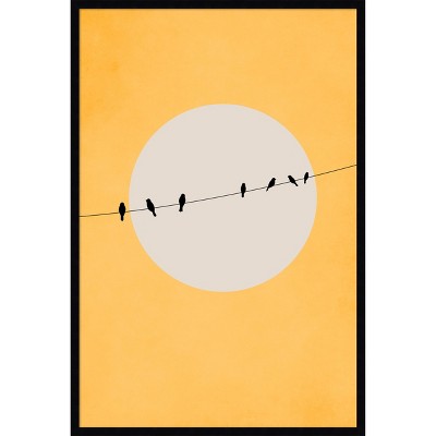 The artwork features two birds soaring gracefully above abstract, geometric mountains in shades of red and pink. The minimalist design creates a tranquil and serene atmosphere. The use of soft colors and simple shapes adds a calming elegance to the composition. This framed art print was created by Eins Kubistika and printed by Amanti Art in Madison WI. The print is giclee printed using fade-resistant inks for picture-perfect detail and incredible depth of color and finished with a 100% real wood frame. Individually made using traditional custom framing techniques, it has the quality you would expect from your local frame shop.