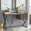Elevate your office space with the Amara desk from Buylateral. Mid-Century lines complement the asymmetrical design allowing plenty of leg room space. This desk features two drawers for office essentials and a sturdy black metal cross frame. Contemporary style with a splash of industrial influence makes this the perfect piece to outfit a home office or work-study space for the family.