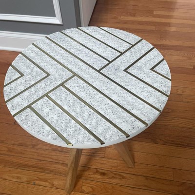 Amari Round Side Table with Brass Inlay Top White - Adore Decor: Marble Look, Tripod Base, No Assembly Required