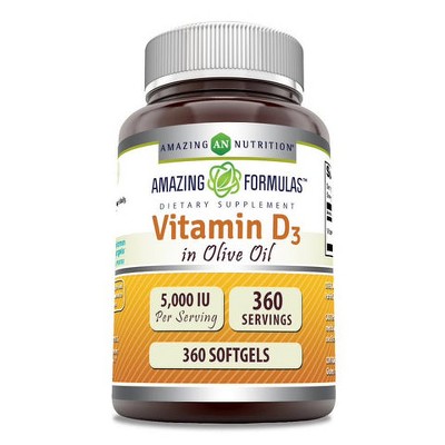 Amazing Formulas Vitamin D3 with Organic Coconut Oil 5000 IU 360 Softgels