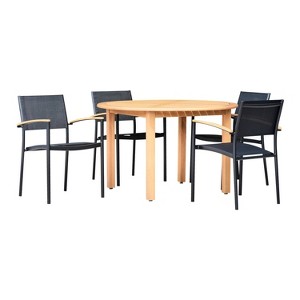Amazonia 5pc Eucalyptus Round Longbottom Outdoor Patio Dining Set Black: All-Weather, UV-Resistant