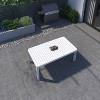 - Table Materials: Made of powder rust-free aluminum, which offers stability and robustness while also being lightweight and easy to move. Coated with Duracoat®, an enviromentally friendly powder coating. This combination gives you the best outdoor performance, with a high weather resistance and low maintenance.