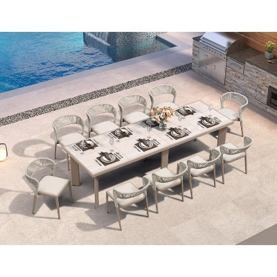 Amazonia Leblon 9pc Aluminum Rectangular Patio Dining Set White