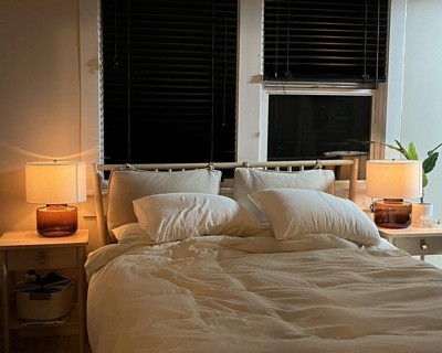 These lamps are so cute in real life! The lamp shade makes it so it diffuses the light nicely. The warm amber color looks so luxurious too! It’s also a hallow bottom in case anybody wanted to have a fake flower under it too it’s just overall very cute