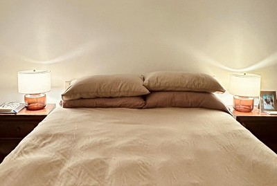 Love this lamp! Beautiful color and the switch is easy to reach from bed. The cord is clear too makes it less visible between the side table and bed.