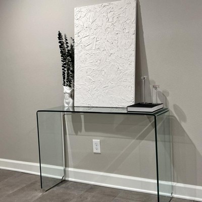 The Ambler Console embodies minimalist chic, an exquisite piece of furniture artfully formed from a single piece of tempered glass. Its classic design transcends trends, offering a versatile foundation for any aesthetic. Whether you style it with carefully curated accessories or choose to leave it unadorned as a sculptural form, its crystal-clear silhouette creates a truly remarkable illusion, appearing to effortlessly float within any room. This console isn't just a surface; it's a statement of refined simplicity, adding an airy elegance and an undeniable sense of spaciousness to your home.