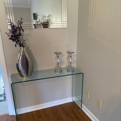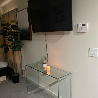 I had been looking for a table like this and similar tables (mainly made of acrylic) are priced at $400+. This was such a great price and I like that the glass adds a slight "color" rather than being perfectly clear. This table acts as my TV console at the moment but I could see myself keeping this forever and using it for entryway, a desk, or a vanity.