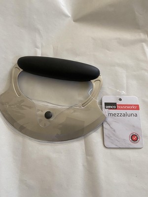 Product Name: Amco 4.9" Mezzaluna with Silicone Handle & Stainless Steel Blade - Dishwasher Safe Versatile Chopping Tool for All Kitchen Needs - Non-Slip Grip