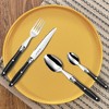 The Comptoir flatware set features a classic shape and riveted handles. The traditional look contributes to a timeless appeal, ensuring the set remains stylish across different dining settings. Suitable for various occasions, from formal dinners to casual gatherings, adding a touch of French charm to any table. Made of 18/0 stainless steel and dishwasher safe using mild detergents.