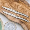 This Lou Laguiole steak set, Alphonse, is made in Thiers, France, adhering to the rich cutlery tradition of the region known for its craftsmanship and expertise. This set gives your table a modern ambiance. Each knife in the set is designed to be perfectly balanced, ensuring a comfortable and precise cutting experience. The set comes packaged in a wooden gift box, providing an elegant and convenient storage solution. Made of 13/0 stainless steel and dishwasher safe.