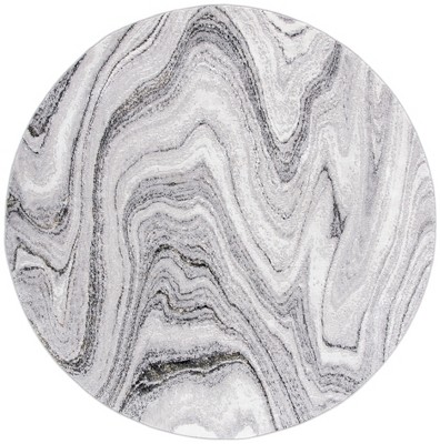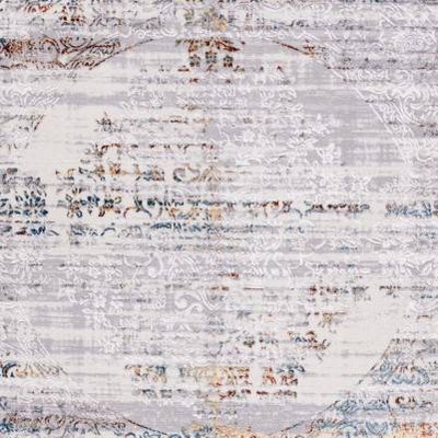 Adorned with an intricate charcoal and grey contemporary design that has taken inspiration from classic motifs, this rug marries traditional patterns with a modern palette. Its round shape makes it a versatile addition to any room, whether it's under a dining table or accentuating a living space.