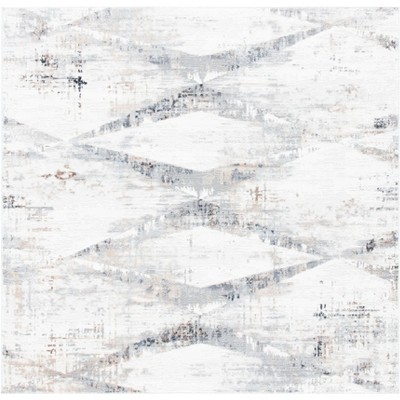 Elevate your living space with our exquisite 6'-7" X 6'-7" square area rug, a chic addition to any room seeking a touch of elegance. With an ultra-modern ivory and grey color palette, this Turkish-made transitional masterpiece promises durability and sophistication. The rug features an abstract pattern that exudes a luxurious distressed look, seamlessly blending with both contemporary and traditional decor.
