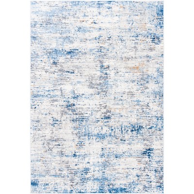 The cotton construction provides a breathable and natural feel, while the transitional style seamlessly integrates with both contemporary and traditional decor. Its captivating pattern features an abstract design in a serene palette of ivory and blue, adding a touch of elegance and tranquility to your home.