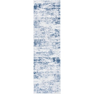 This runner rug showcases a modern abstract pattern that draws the eye without overwhelming your decor. The palette of navy and grey offers versatility, allowing the rug to become a statement piece or a harmonious addition to your existing design scheme.