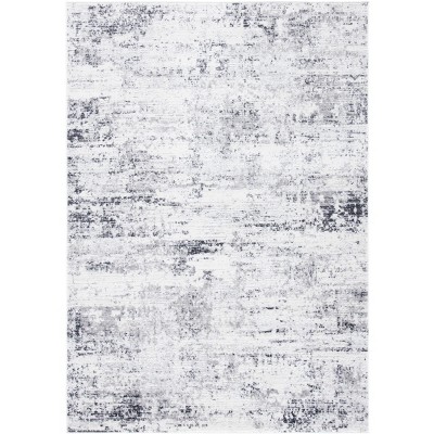 The rug's pattern displays a modern amalgamation of geometric and abstract motifs, creating a captivating visual texture that blends seamlessly with various decors. Its harmonious grey and ivory hues offer a chic, neutral palette that complements a wide range of color schemes. Whether placed in your living room, bedroom, or study, this contemporary rug will be a statement piece that combines both style and comfort.