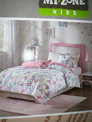 - Set includes comforter, 2 shams (1 in Twin), 1 butterfly pillow