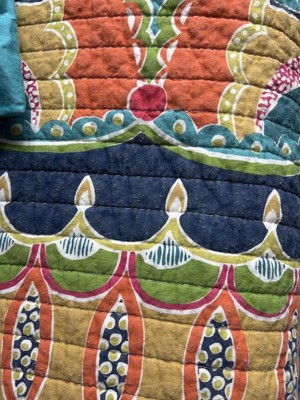 The Amelie Reversible Twin Quilt Set by Levtex Home is inspired by antique colorful fabrics. This intricate, bright medallion design will immediately transform your bedroom. Made with the softest lightweight cotton, this reversible quilt features a bright, colorful medallion, reversing to a bright medallion on the other. The Twin Quilt Set is machine washable and includes the quilt (68x86in.) and one standard pillow sham (26x20in.) Enjoy this for years to come!