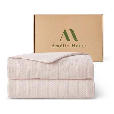Amelie Home Striped Faux Fur Throw Blanket for Sofa, Bed, or Chair - Beige(60*80)