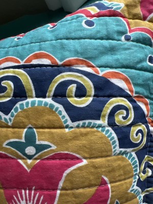 The Amelie Reversible Twin Quilt Set by Levtex Home is inspired by antique colorful fabrics. This intricate, bright medallion design will immediately transform your bedroom. Made with the softest lightweight cotton, this reversible quilt features a bright, colorful medallion, reversing to a bright medallion on the other. The Twin Quilt Set is machine washable and includes the quilt (68x86in.) and one standard pillow sham (26x20in.) Enjoy this for years to come!