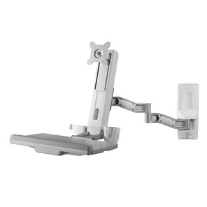 This Amer wall mount workstation system provides a simple way to mount your keyboard, mouse and monitor all onto one flexible extension arm. This give you the ability to easily move your workstation into position where you need it and in the position it is needed, In addition to the ability to move side to side, the screen can be raised, lowered as well as rotated and tilted. When additional space is required, this sit stand workstation wall mount can be made compact by folding the keyboard tray providing the room needed for other important task.