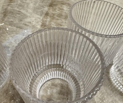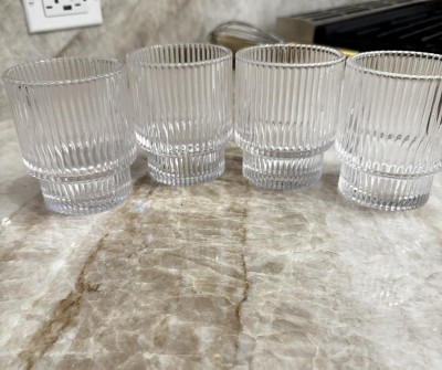 American Atelier Vintage Art Deco 9 oz. Fluted Drinking Glasses Set of 4, Old Fashion Tumbler for Cocktails, Ribbed Lowball Glass Cup, Clear