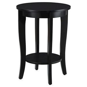 The American Heritage Round End Table with Shelf by Breighton Home combines elegance and sophistication. This simple transitional design features a bottom shelf allowing for additional storage and display area. The slightly curved legs and tapered sillhouette is made of solid wood and MDF is built to last and will complement any new or existing decor. Available in multiple finishes.