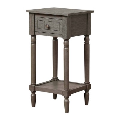 The American Heritage Round End Table with Shelf by Breighton Home combines elegance and sophistication. This simple transitional design features a bottom shelf allowing for additional storage and display area. The slightly curved legs and tapered sillhouette is made of solid wood and MDF is built to last and will complement any new or existing decor. Available in multiple finishes.