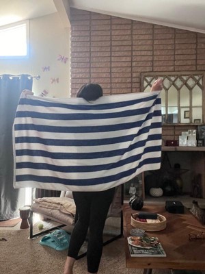 [This review was collected as part of a promotion.] The 30x60 inch Cabana Striped Oversized Beach Towel is beautiful! It is vibrant in color and super soft! I am 5’3 and it is almost as long as I am! It absorbs the water pretty good and the sand resistance is great! It’s made of very durable material! Definitely stays in my beach bag!