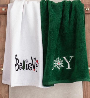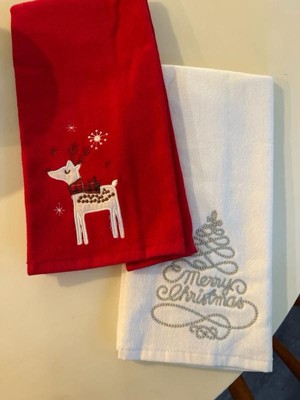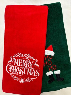 2-Piece Christmas Towel Set – Includes two 16" x 28" embroidered cotton towels designed for festive holiday décor.