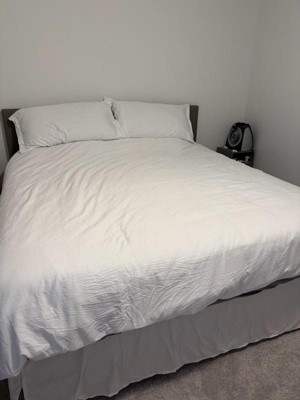 [This review was collected as part of a promotion.] So soft and perfect shade of white. We loved putting this on our bed! Only thing is the sizing was confusing and hard to buy the insert for it. Other than that, worked great!