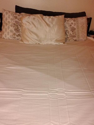 [This review was collected as part of a promotion.] Very nice texture. It doesn't feel overly silky. It's a nice smooth texture. No problems yet. Fits well for us. Would definitely buy again. Using it in our guest room and just had our first guest. We got compliments on the material.