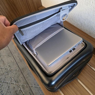 [This review was collected as part of a promotion.] Great little carry on suitcase. Lots of compartments inside to organize your belongings and a little travel pouch for liquids. I like the outside zip compartment for easy laptop storage and accessibility. It rolls smooth and is very lightweight. I knocked off one star because it doesn’t have a very premium feel but overall a great value.