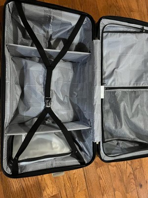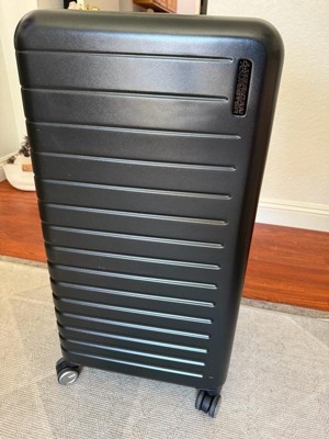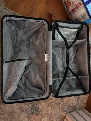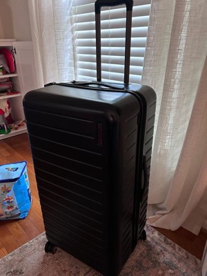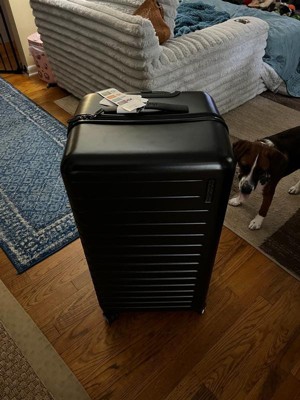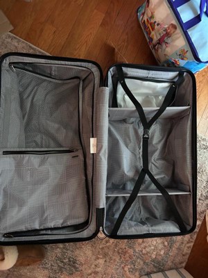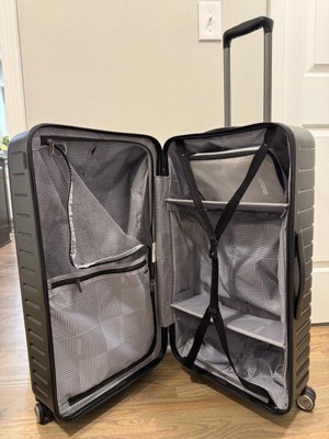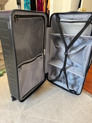 [This review was collected as part of a promotion.] This is a hard shell checked luggage piece but the shell also has some give. It’s a little more narrow than other checked luggage I’ve had in the past. The 4 wheels makes it super easy to roll around. It also has a handle on the top, side and bottom for easy carry and moving around. I love the inside. The removalable/ moveable dividers are such a good packing tool. Also the divider between a sides with extra compartments is a plus. I’m excited to see how this travels and wears but out of the box seems like a great checked luggage piece.