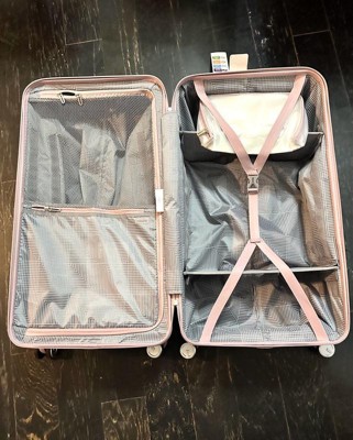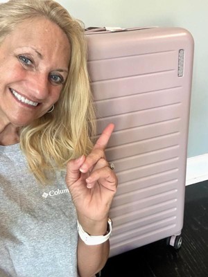 [This review was collected as part of a promotion.] I absolutely love this suitcase trunk!! It spins so great and makes walking (or running) through an airport so easy! It’s got lots of room!! I love the extra spaces!!! My girls and I can get everything we need for a weekend trip in one case now! The color is so pretty. It’s called cotton candy pink but resembles more of a purple tint! I love it!!