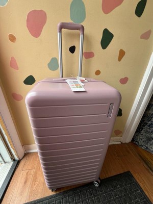 [This review was collected as part of a promotion.] Well, this was considered pink. I think it looks more like a lilac and I actually love the color of it. It feels very cheaply made, especially when it comes to the wheels and I’m not sure how long this would actually last. I’m pretty hard on my luggage. I also wasn’t really a fan of the shape/size. I really wanted a trunk, but I’ve seen a lot that are actually more like a medium suitcase, lengthwise and then just taller height wise. This was definitely taller, but was almost smaller width wise.